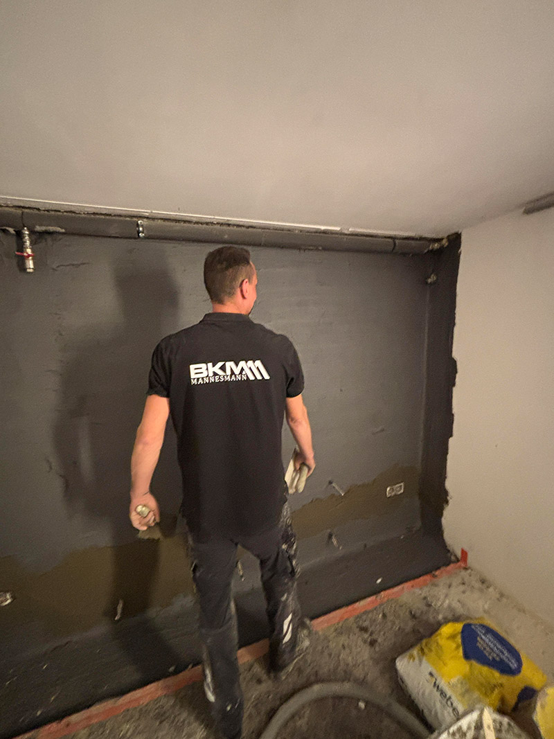 Für die Sanierung des Kellers wurde eine Kombination aus BKM-Innenabdichtung und BKM-Vertikalsperre gewählt – eine bewährte Methode, die sich bei Feuchtigkeit im Wand-Sohlen-Bereich besonders effektiv bewährt.