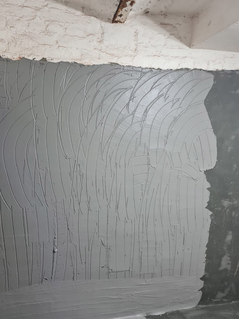 - BKM-Innenabdichtung (druckdicht): Mehrlagiger Auftrag einer speziellen, rissüberbrückenden mineralischen Dichtschlämme zur dauerhaften Abdichtung der Wandflächen gegen drückendes und kapillar aufsteigendes Wasser.