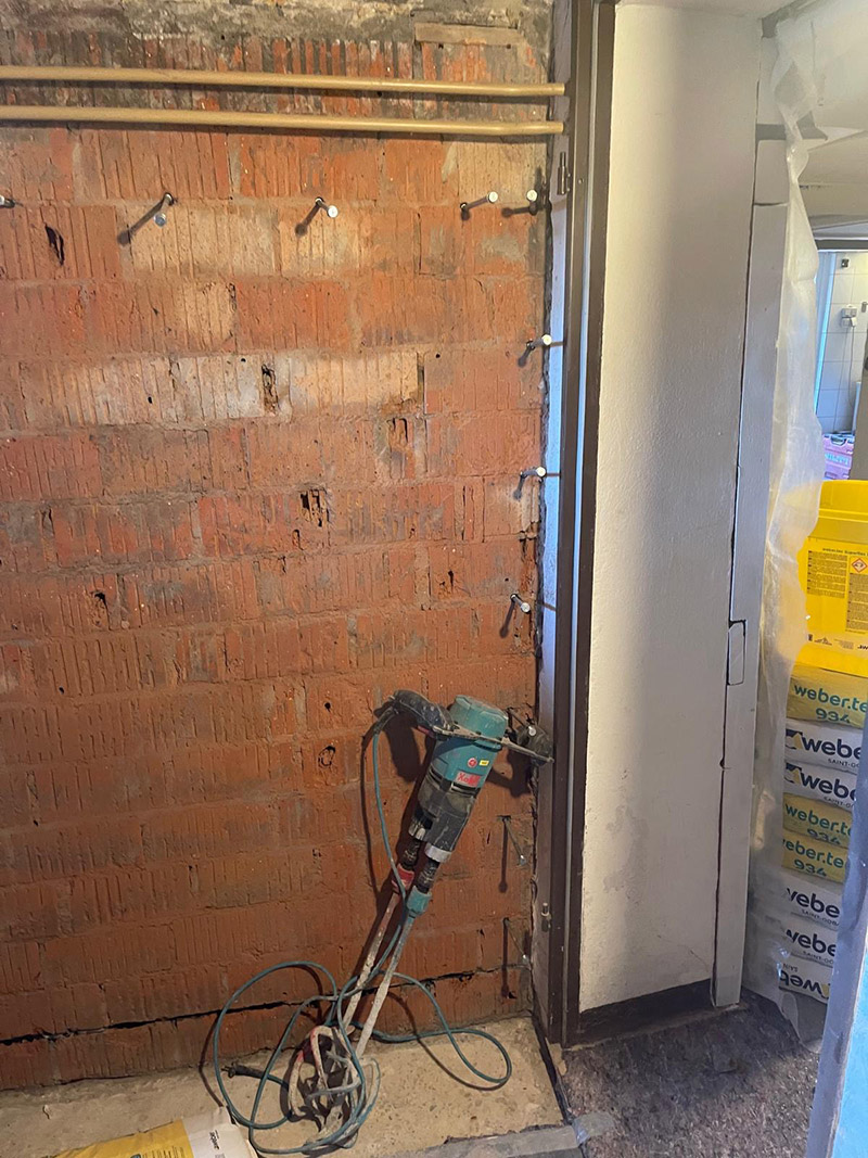 - Untergrundvorbereitung: Entfernung des feuchten Putzes und gründliche Reinigung der Wandflächen, um eine optimale Haftung der Abdichtung zu gewährleisten.